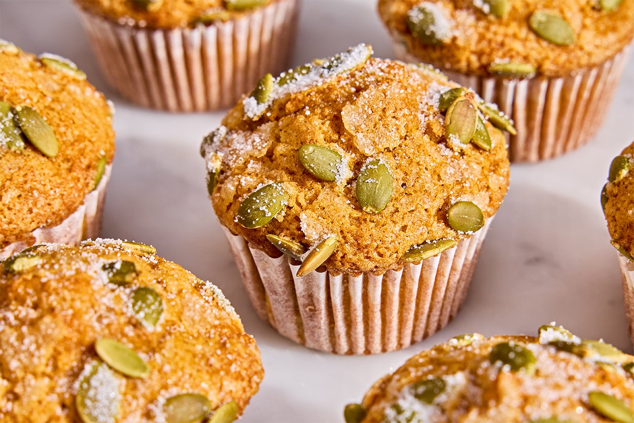 If you’re looking for a way to make your whole kitchen smell like fall, these one-bowl, easy pumpkin muffins deliver — and fast. They’re ready in under an hour, so you can spend less time measuring, mixing, and cleaning and more time tackling your autumn bucket list. The pumpkin seed topping is optional but highly recommended; it brings a welcome crunch and a nutty flavor.