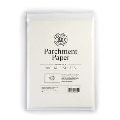 Carefully transfer the rectangle of dough to a 13" x 18" baking sheet (a half-sheet pan), like the Crispiest Crust Pizza Pan, by pulling on the corners of the parchment and gently sliding it into the pan.