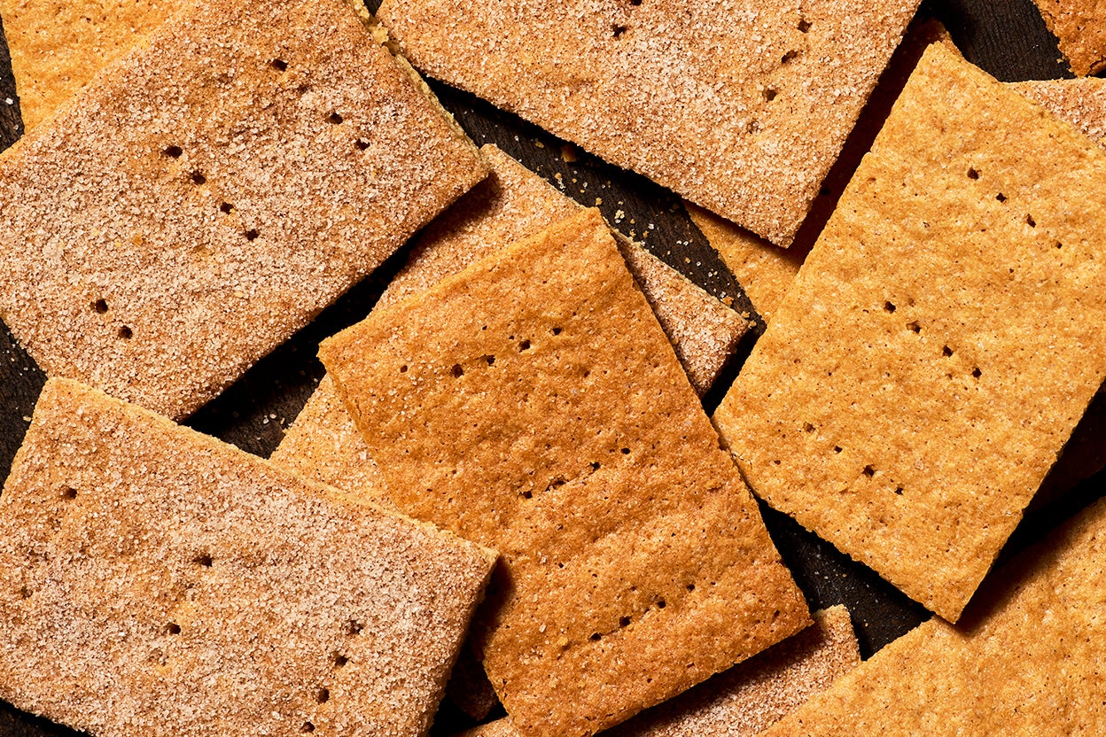 Preheat the oven to 300°F with racks in the upper and lower thirds. (You'll be rolling, transferring, and baking the graham crackers on parchment, so no need to grease any baking sheets.)